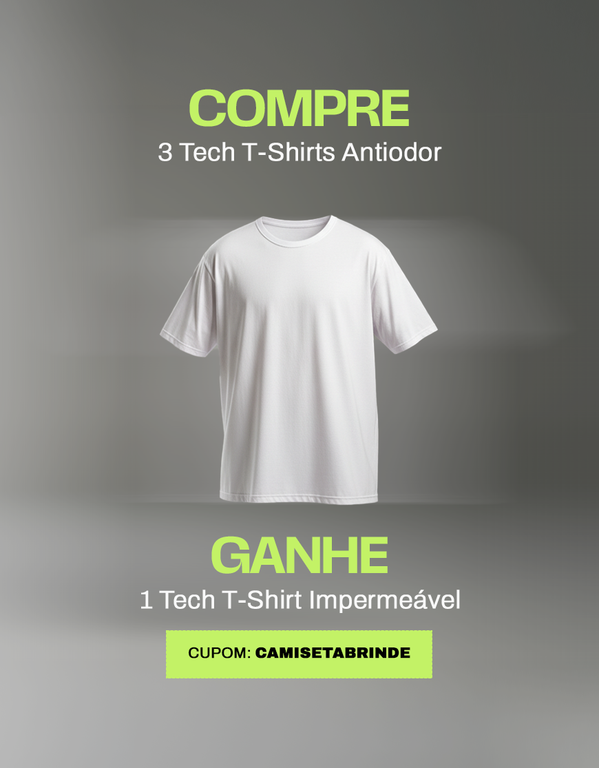Compre 3 camisetas Anti Odor e ganhe uma camiseta Impermeável | Cupom: CAMISETABRINDE